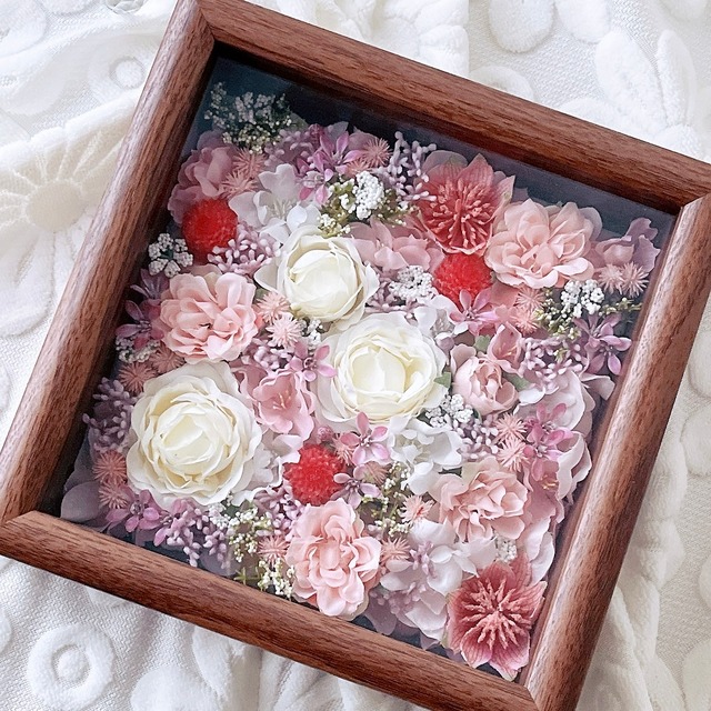☆オーダーメイド☆ フレームフラワーアレンジメント ブラウンのフォトフレームに、お好きなお花でアレンジさせて頂きます。 ご両親贈呈品 記念日 出産祝い お誕生日プレゼント 還暦祝いなど 特別な日のギフトに最適です⟡.·*. ご希望をお伺いして丁寧に仕上げます。 見るたびに思い出がよみがえりますね⟡.·*. 【花材】 アーティフィシャルフラワー プリザーブドフラワー 【フレーム】 木製・ガラス 18□×D6cm 【納期】 お打ち合わせも含めまして、1ヶ月ほどいただいております ❖お急ぎの方は、ご相談ください✉️ ✼••┈┈┈┈┈••✼••┈┈┈┈┈••✼ 一つ一つ手作りで制作いたします。 贈り物として喜ばれる、特別な一品です。 日常の生活に癒しを与え、豊かな気持ちへ導いてくれること間違いありません。 あなたの大切な方へのプレゼントにも最適です。 このフレームアレンジメントが、あなたの生活に幸せと癒しをもたらしますようにෆ˚*